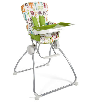 This fresh new design is featured on a simple but practical highchair that folds away compactly for handy storage.