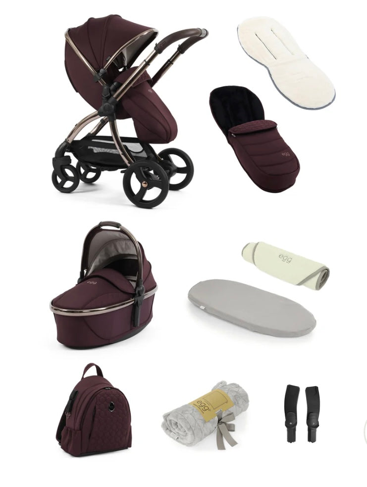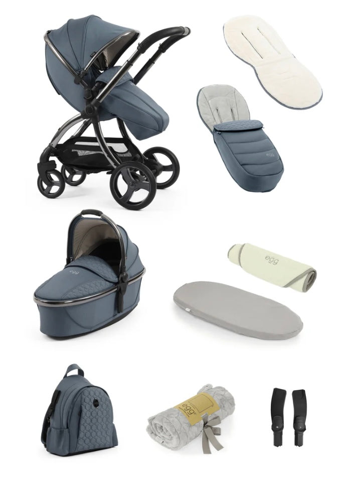 Stroller includes: Rain cover, insect net, apron and reversible fleece liner. Suitable from 6 months to 25kg (from birth with the egg3® carrycot).