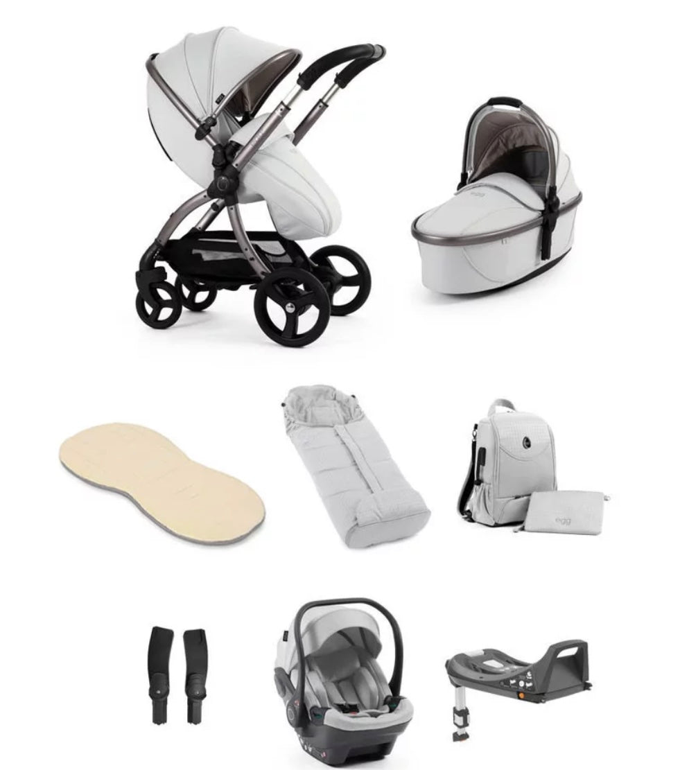 Stroller includes: Rain cover, insect net, apron and reversible fleece liner. Suitable from 6 months to 25kg (from birth with the egg3® carrycot).